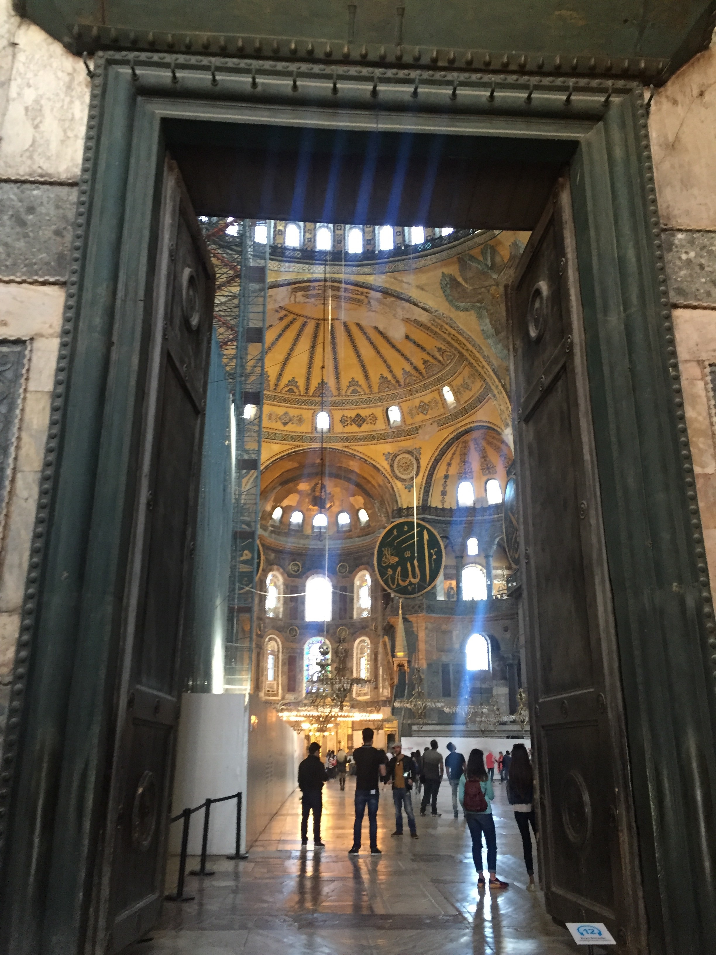 Having spent a fair bit of time inside we made our way out through the luscious gardens and fountains across the square over to Ayasofya Museum or Hagia Sophia. Now, I’ve read a fair bit of the history of this place in history fiction books, school history books and so when you actually walk through the massive doors and see the main room, you can see how old the place is. Even though there is restoration work going on, the overall structure and layout of the building is dark, the byzantine gold plated ceilings are chipping away but you can see the largest calligraphy plates hanging in the main entrance on the pillars. Walking around this historical space that has seen so much I was reminded of Mezquita-Cathedral of Cordoba. Where here stood a church converted to a mosque there stood a mosque converted to a church. There is so much to mention on this monument's history but i'll let you read up on it yourself, some info can be found on the site.